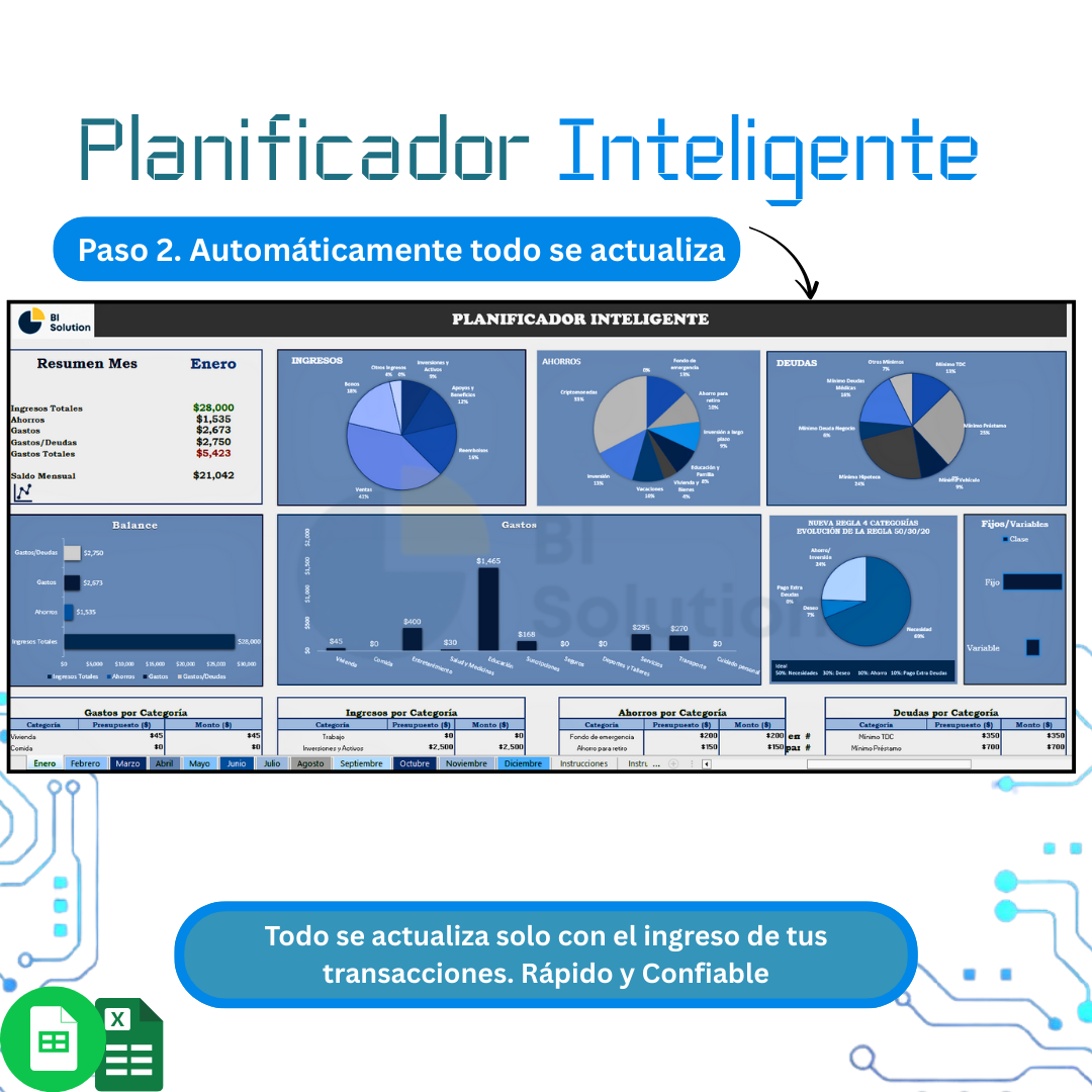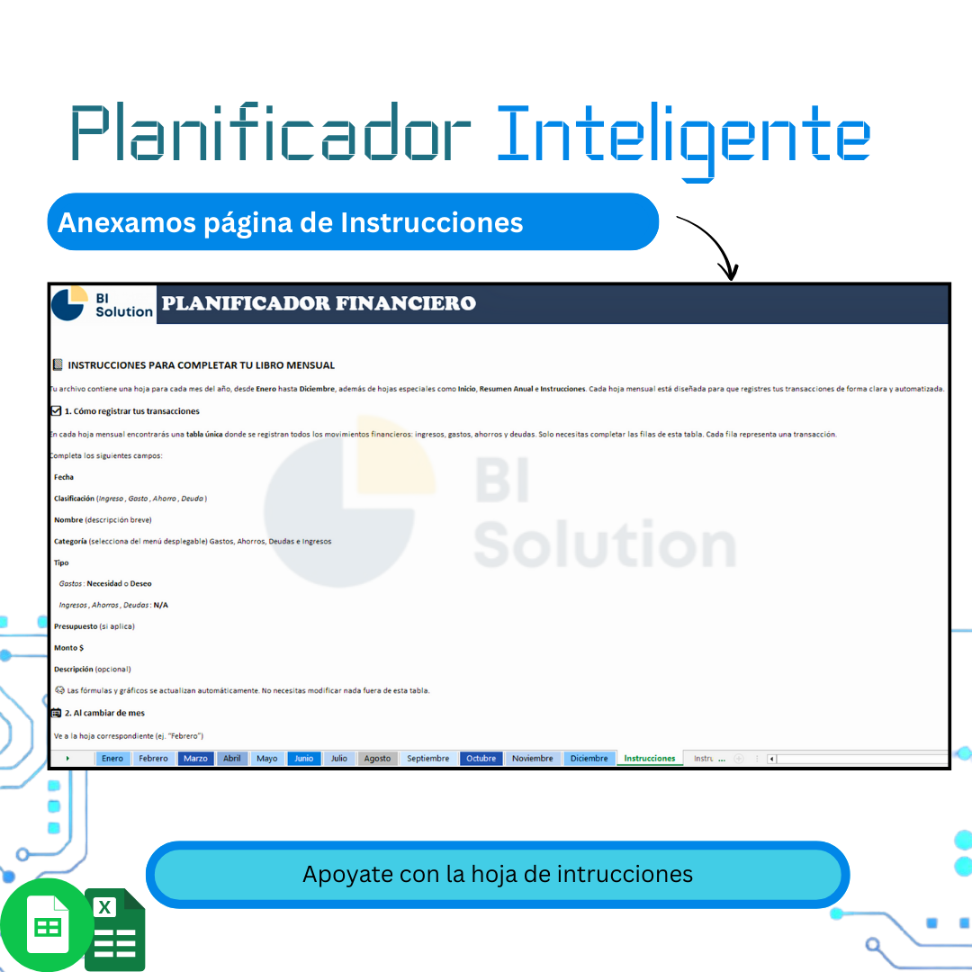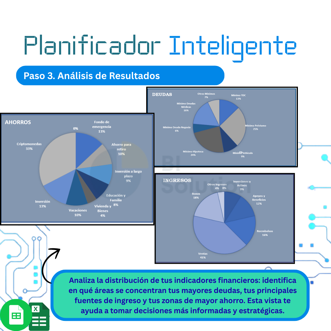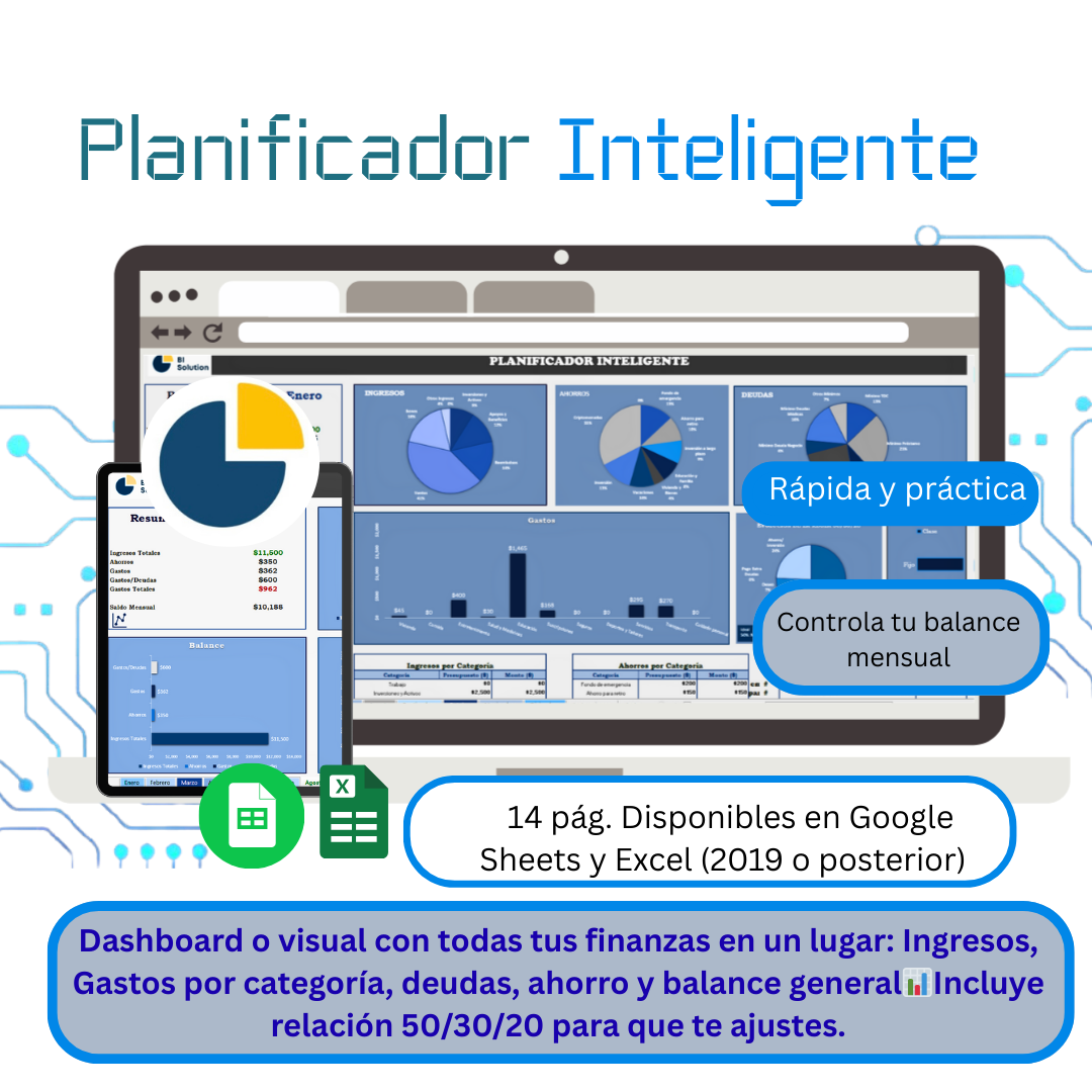 En BI Solution creemos que la educación financiera no debe ser complicada ni exclusiva. Por eso diseñamos soluciones prácticas como plantillas en Excel, simuladores y planners que simplifican la gestión del dinero y ayudan a visualizar el progreso real.